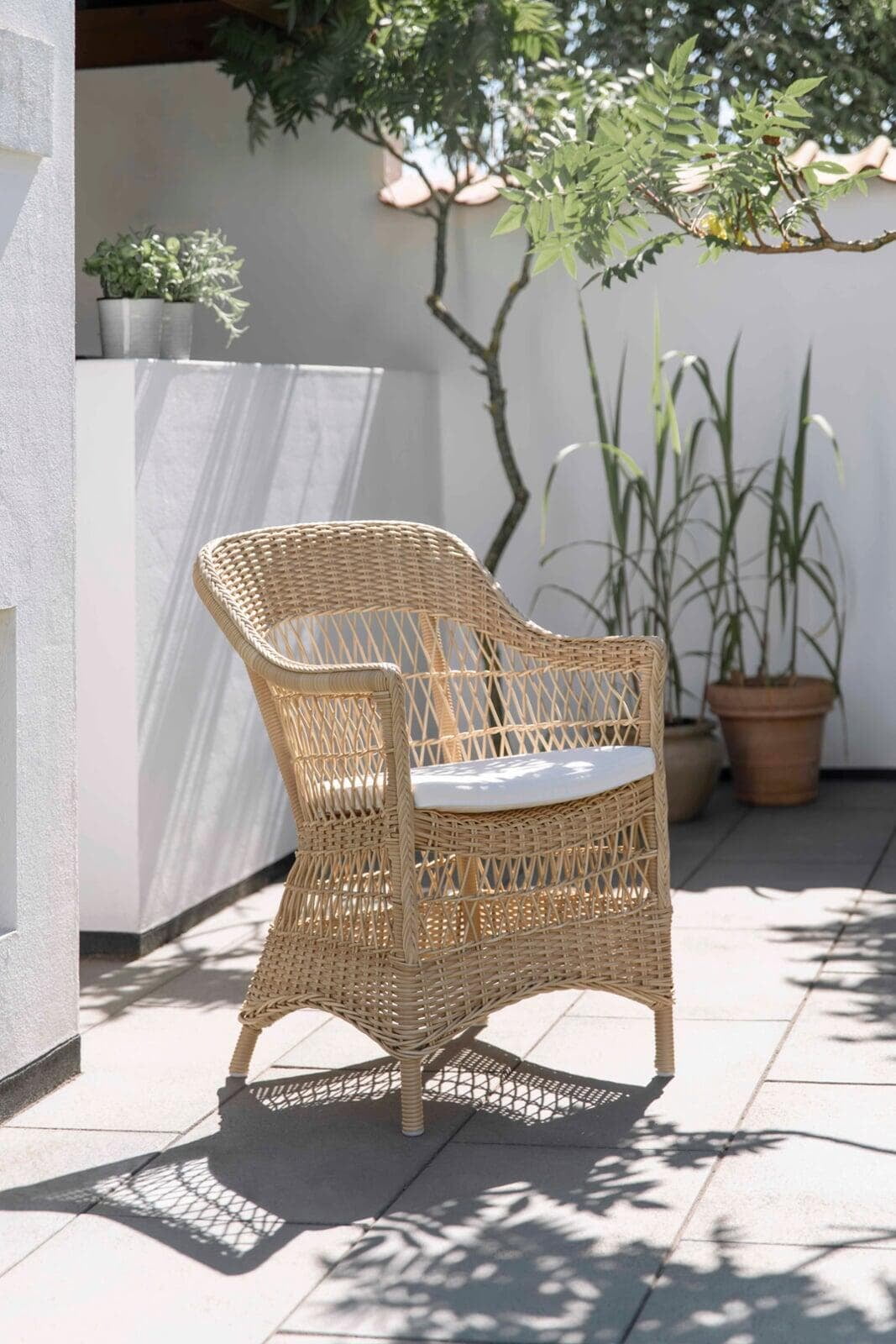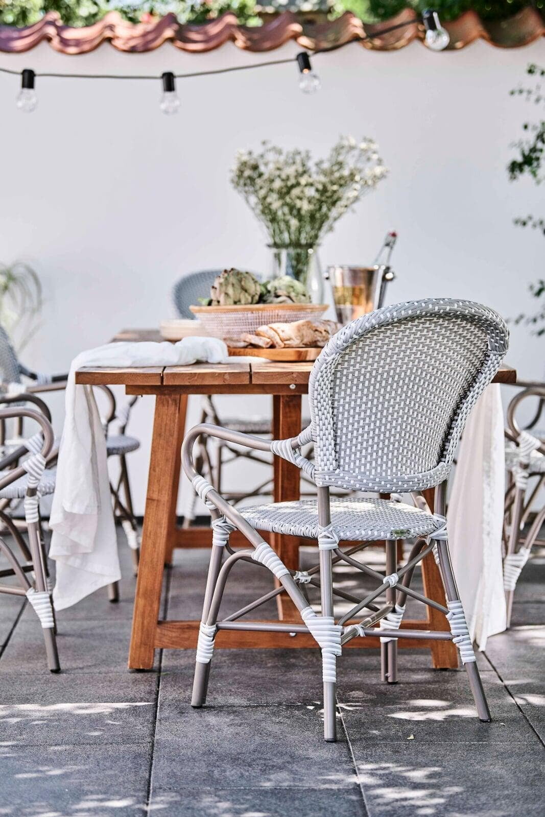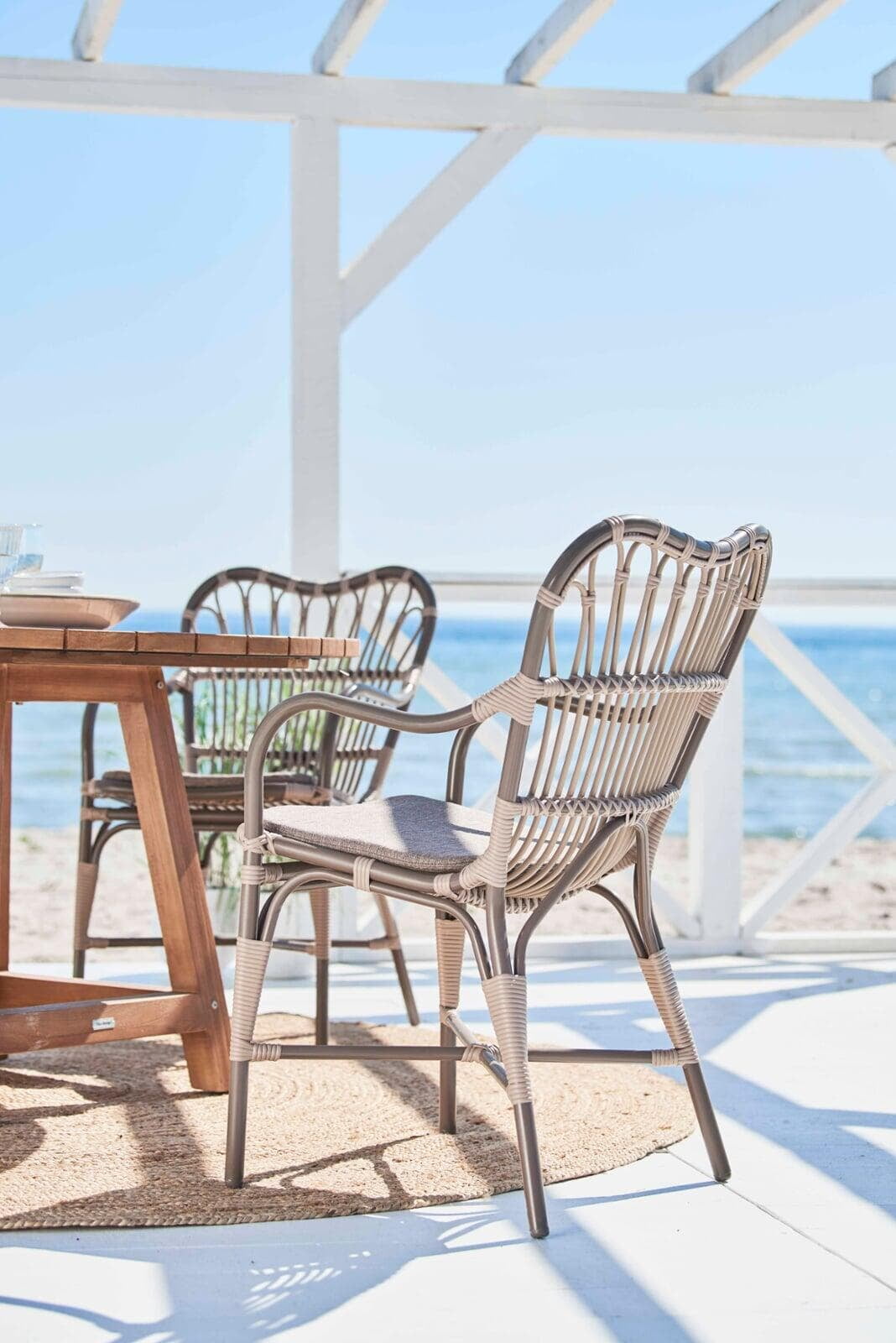 The outdoor collection is handcrafted in Alu-Rattan and Sika-Design ArtFibre®. Alu-Rattan is powder-coated aluminum that has been developed to resemble rattan and its unique shaping ability. Powder coating has the advantage that it can withstand hard wear and high temperatures. ArtFibre® is a unique fiber made of dyed hard-wearing polyethylene that is temperature and UV resistant. The fiber has a strong structure that can maintain its shape for years on end.