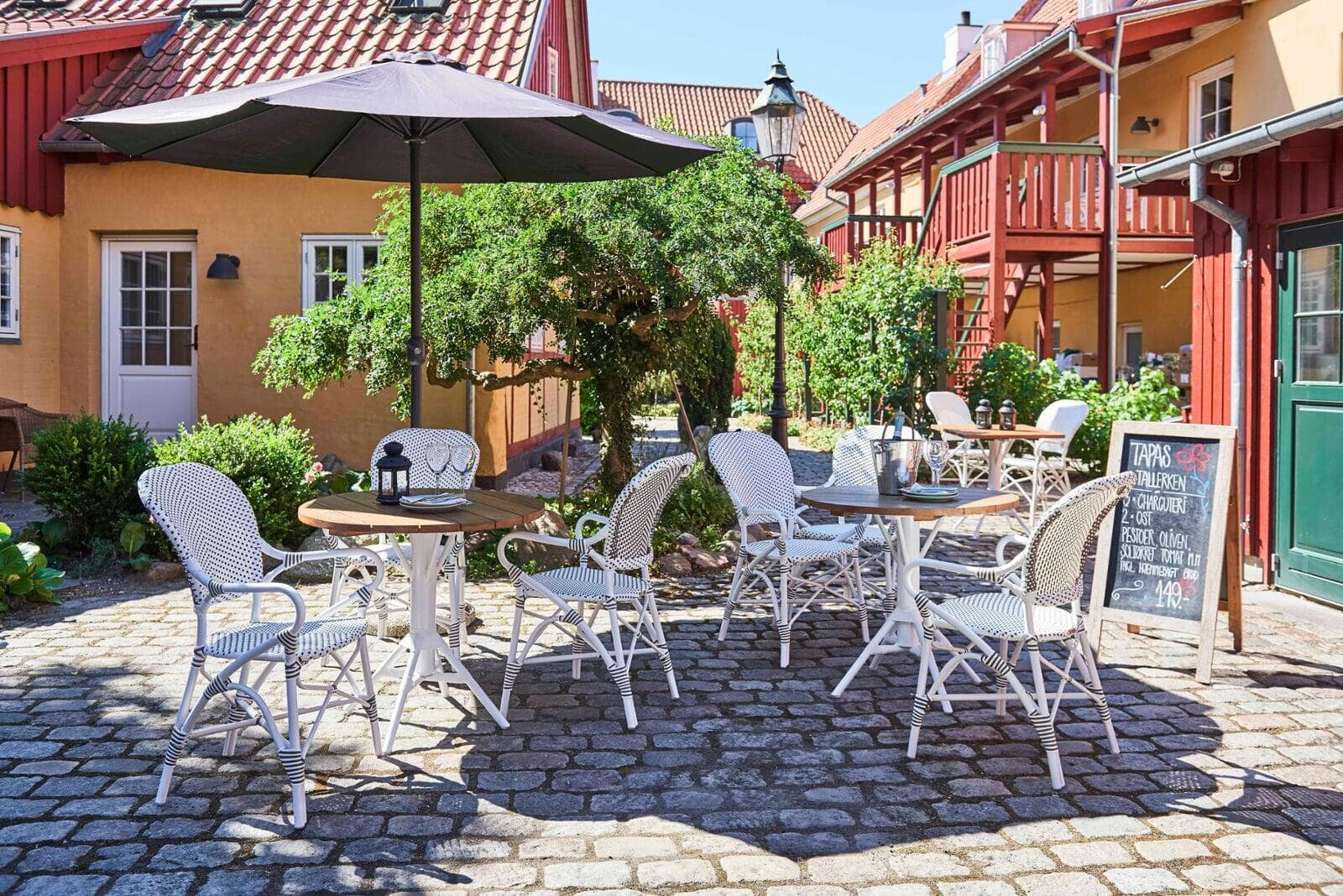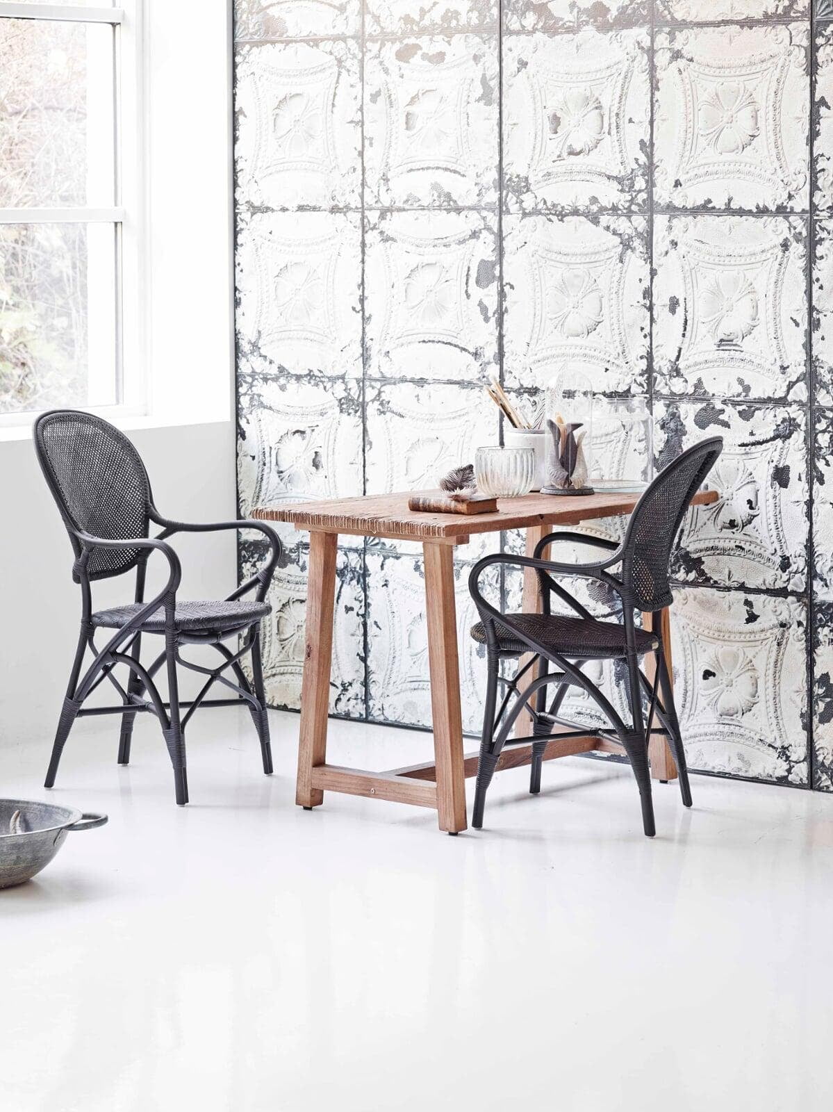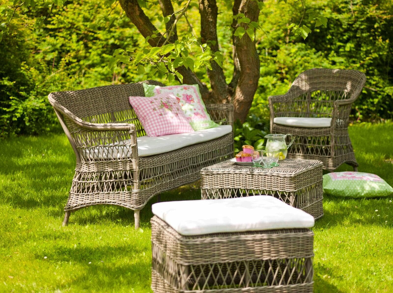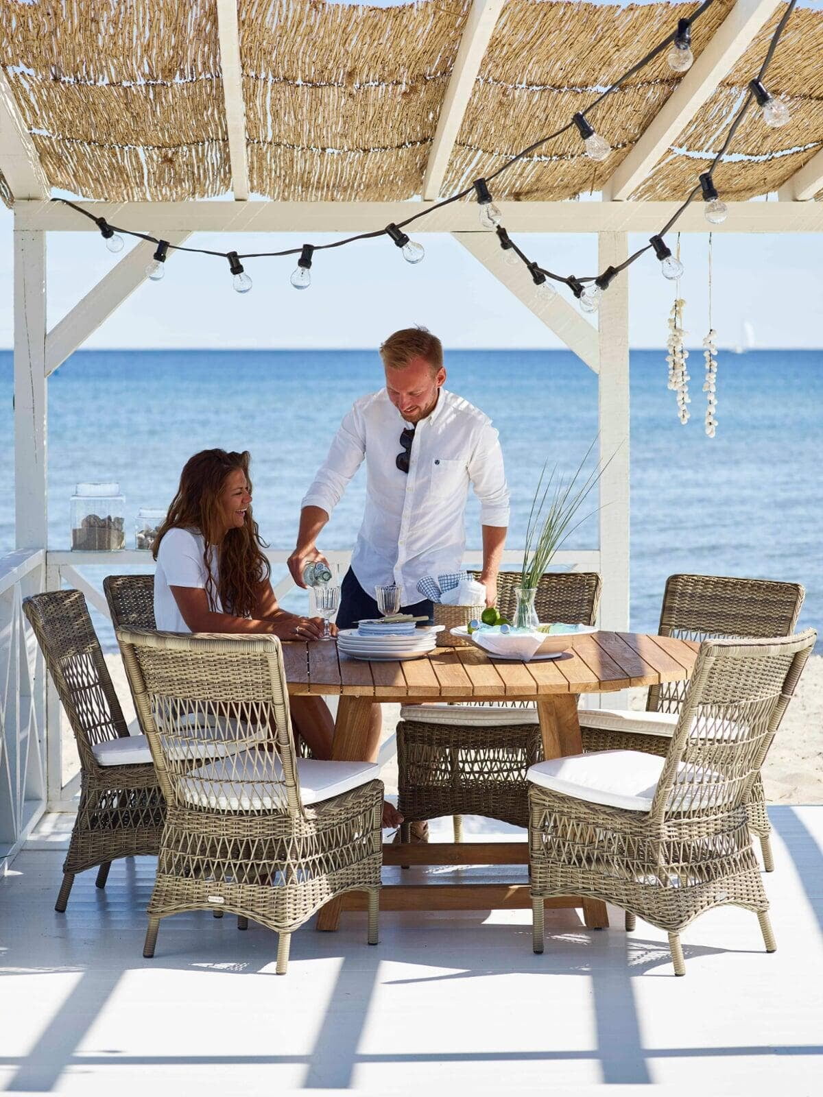 The outdoor collection is handcrafted in Alu-Rattan and Sika-Design ArtFibre®. Alu-Rattan is powder-coated aluminum that has been developed to resemble rattan and its unique shaping ability. Powder coating has the advantage that it can withstand hard wear and high temperatures. ArtFibre® is a unique fiber made of dyed hard-wearing polyethylene that is temperature and UV resistant. The fiber has a strong structure that can maintain its shape for years on end.