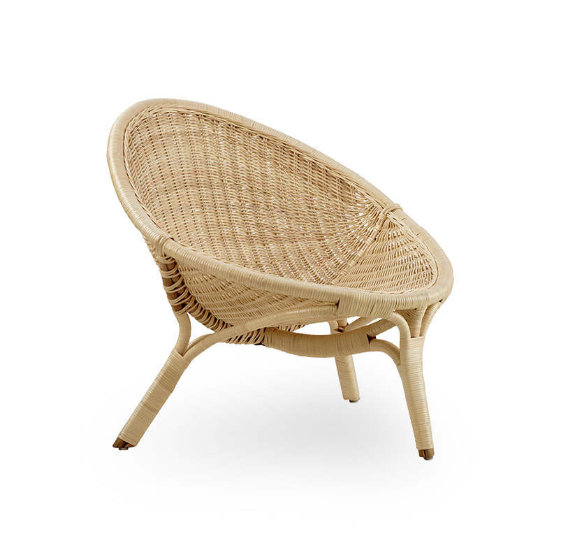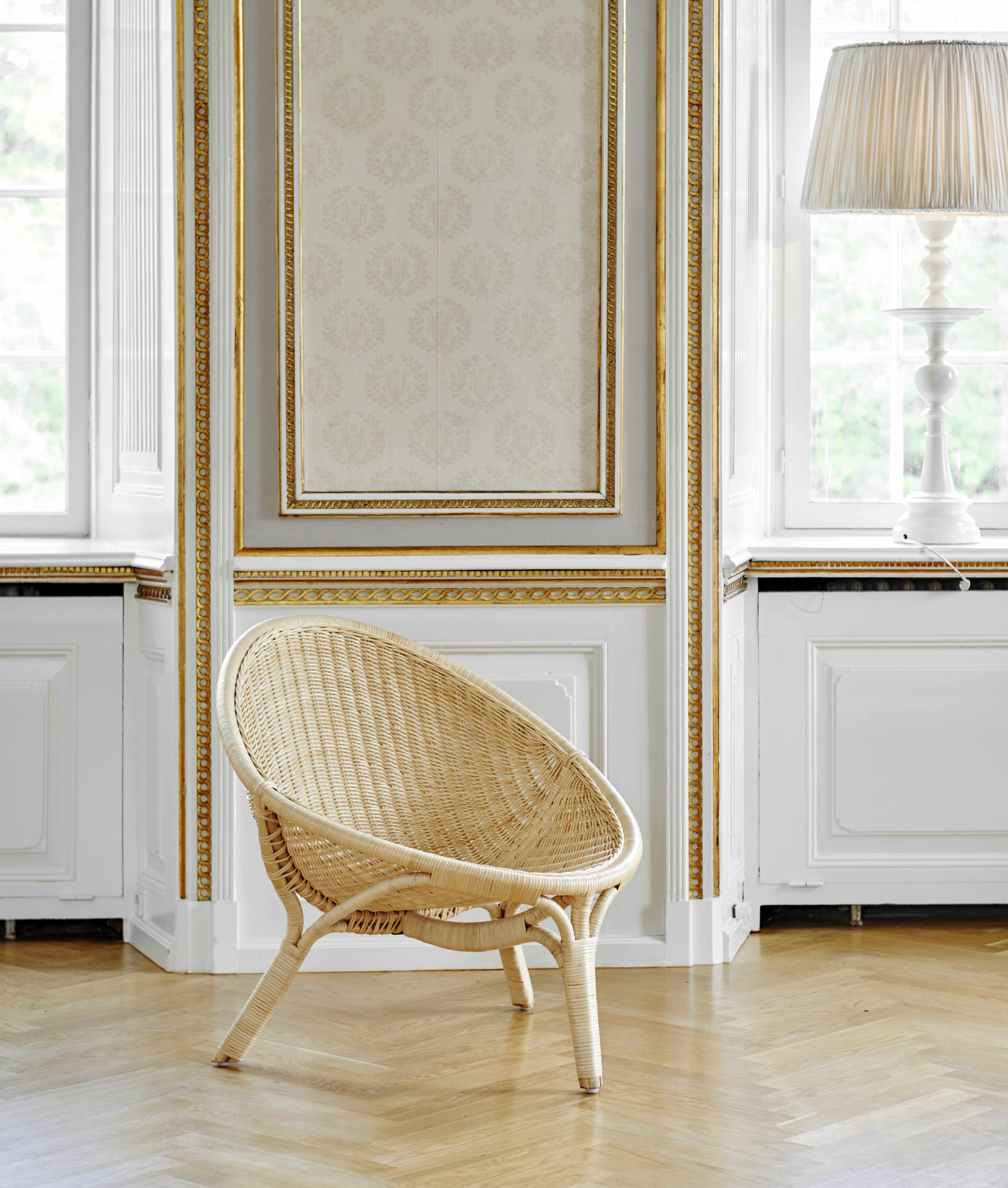 Rana is a lounge chair designed by Nanna Ditzel, who was one of Denmark's most innovative female designers, and who is also behind the iconic hammock chair The Hanging Egg. Nanna Ditzel's experimental approach to materials, and based on the body, resulted in one of the first bids for a cohesive chair. The three-legged wicker chair was the initiator for the rediscovery of the rattan's many properties, and with international awards won, wicker furniture regained its status in interior design.
