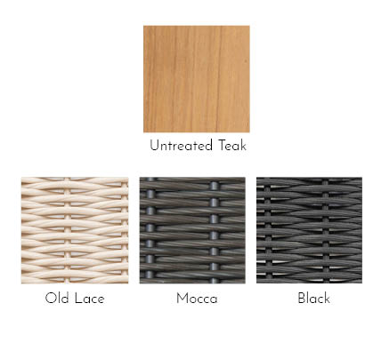 Polyethylene wicker on an aluminium frame and a solid teak base, untreated