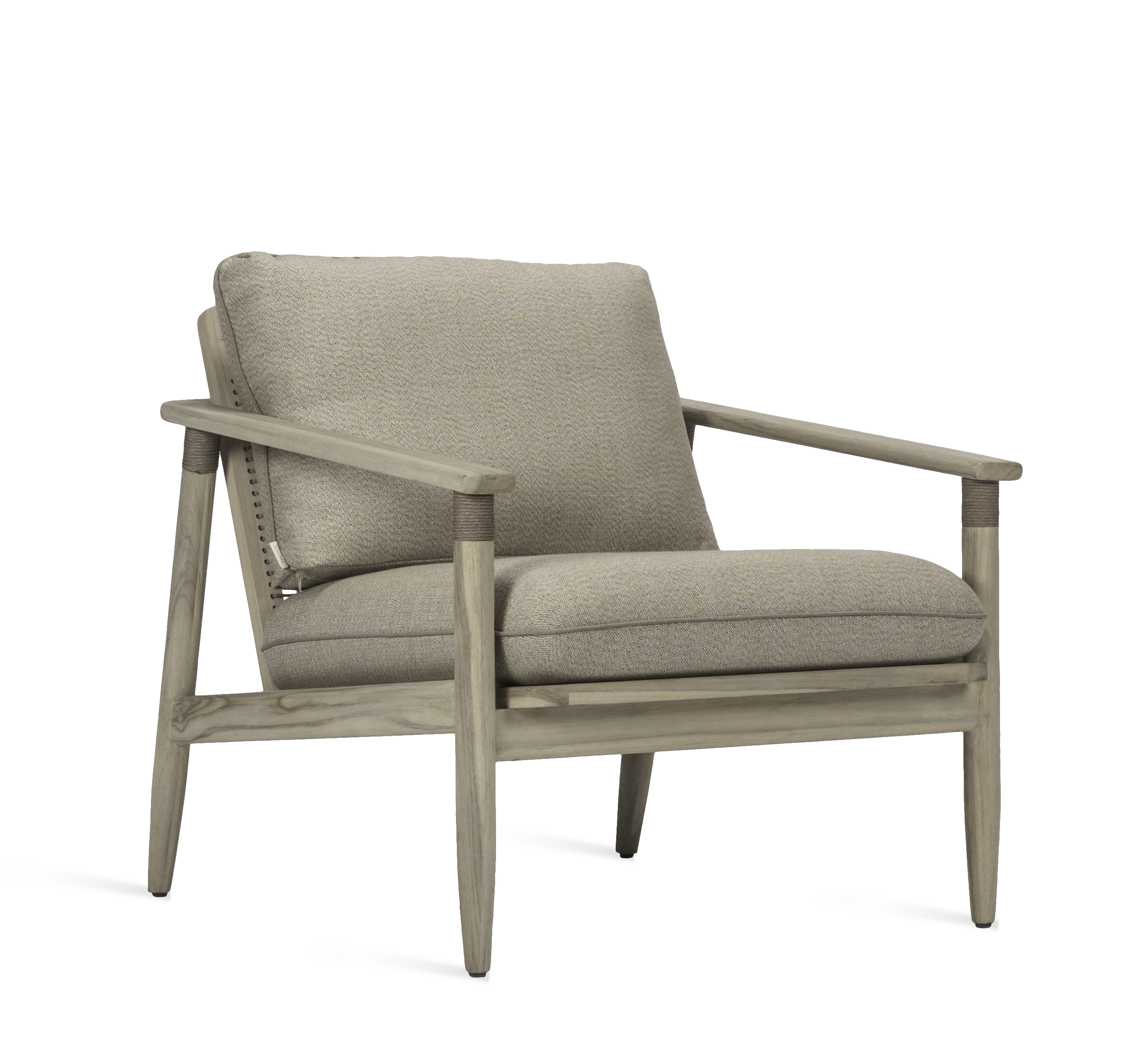 The David lounge chair in aged teak with woven back and rope details is perfect for adding a refined look to its surroundings. Pair with the David side table to create a cosy outdoor lounge spot.