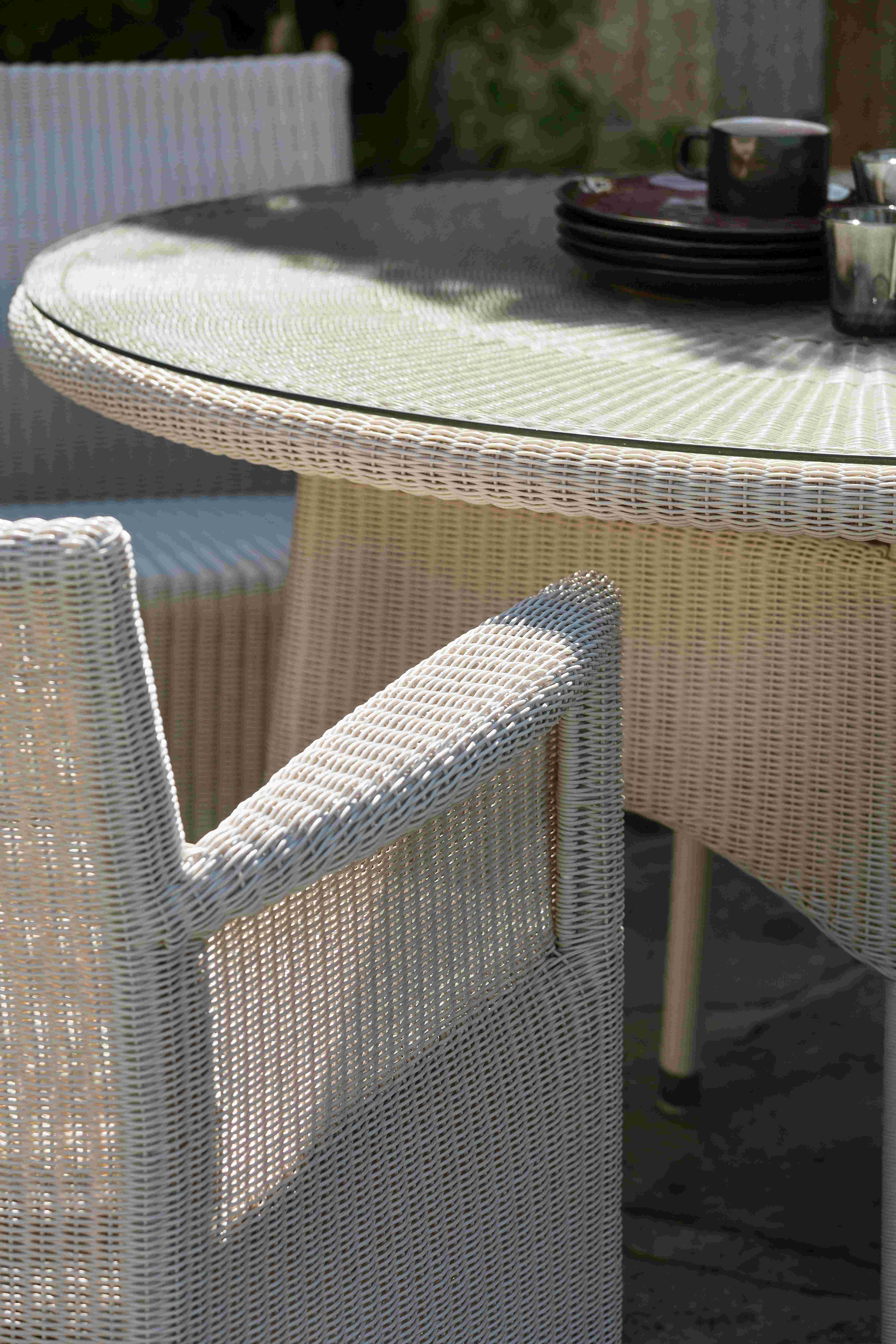 The Safi Dining Chair uses outdoor wicker weave in colour Old Lace and aluminium frame. Made for all weathers these chairs can stay outside all year long. Perfect for your conservatory or outdoor dining area.