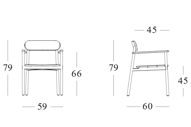 The stackable Freya chair has a classic and elegant appearance. Its solid wooden legs and curved backrest are gently rounded which creates an inviting yet sturdy look. Three wide teak slats characterize Freya's seat and give the chair a timeless aesthetic with an edge.