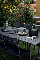 One of our favourite Fermob tables. It's generous size allow plenty of space to seat 8-10 people. Made using an aluminium tubular frame and aluminium slats, this table by Frédéric Sofia is simply stunning. Match with Luxembourg dining chairs, or any of the practical and stylish chairs in the Fermob collection.