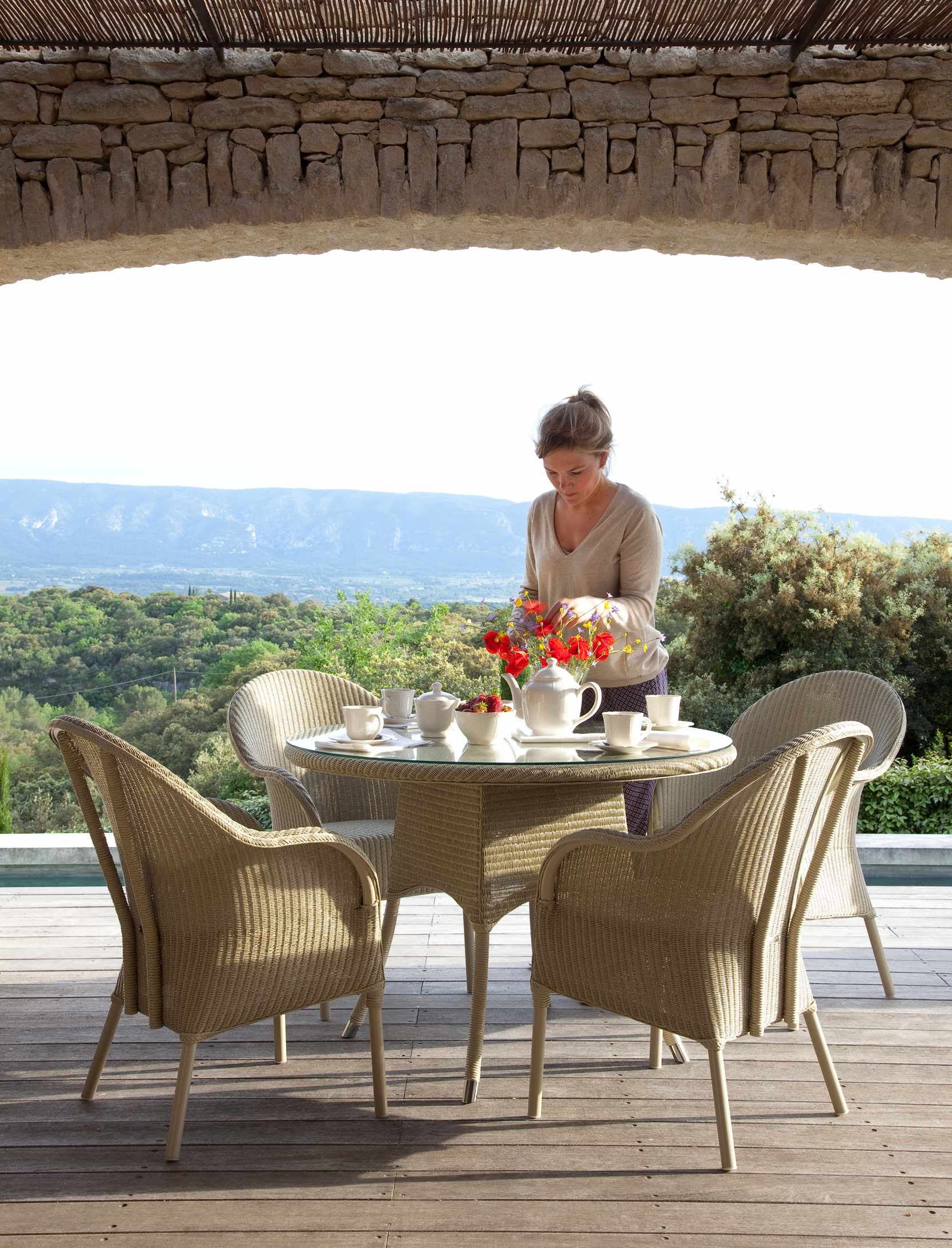 Lloyd Loom weave | Aluminum frame | Glass top available