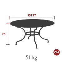 A large round table with wonderful character. The Romane has been in the Fermob collection for many years. Made in their factory in eastern France near Lyon, from 100% steel and covered in polyester powder coating, the quality is uncompromising. Choose from any of Fermob's metal colours.