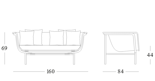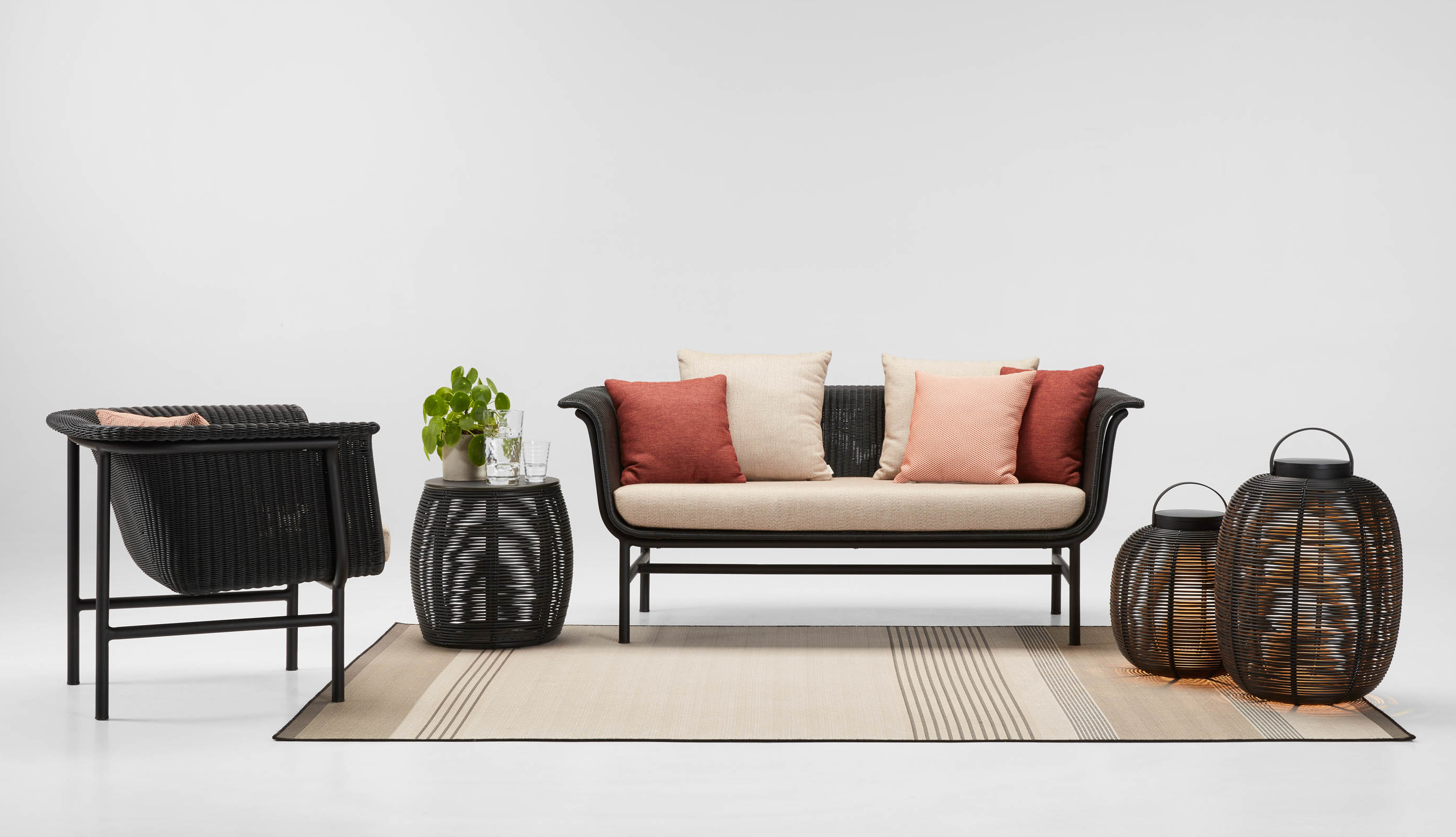 The Wicked lounge sofa 2S focuses on a modern and graphic interpretation of the classic rattan chair. The sofa sits two people.